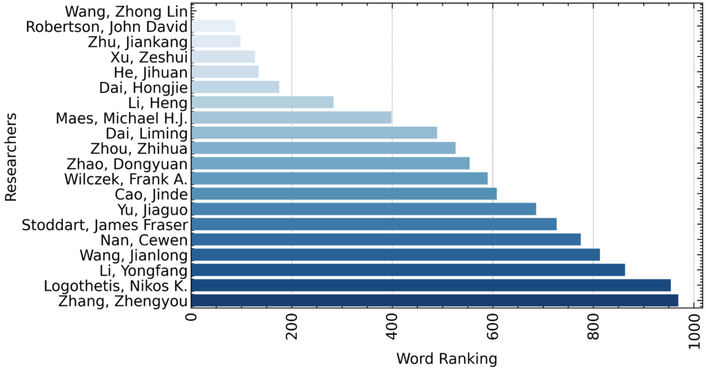 - Wang Zhong Lin (Rank 1) stands out as a global leader, particularly for his pioneering work in nanogenerators and energy harvesting.