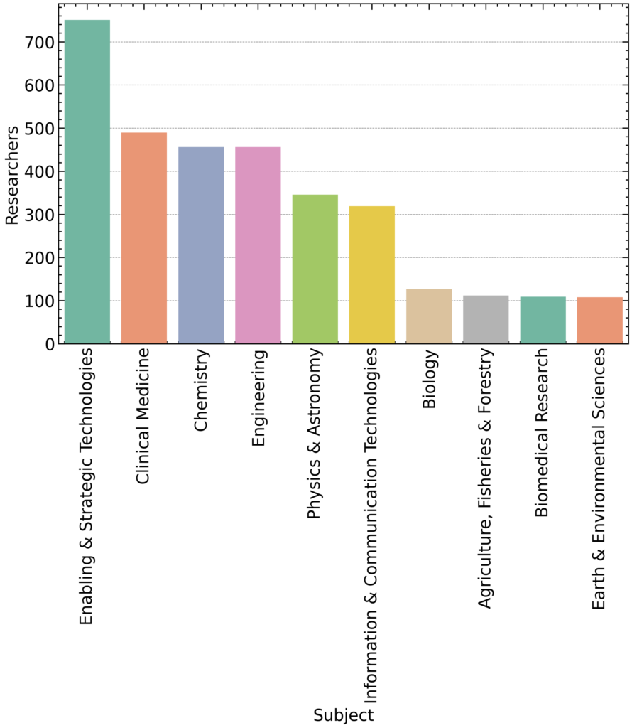 - Enabling & Strategic Technologies (751 researchers) – spanning material sciences, nanotech, and applied physics.