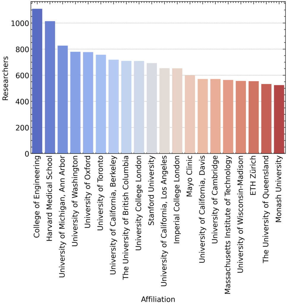 This reinforces the fact that top research institutions consistently attract and support globally impactful researchers, further consolidating their positions as hubs of scientific advancement.