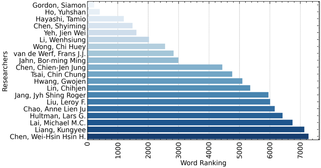 - Chen, Wei-Hsin Hsin H. and Liang, Kungyee are positioned among the top 7,000 globally, representing Taiwan’s long-term global impact.