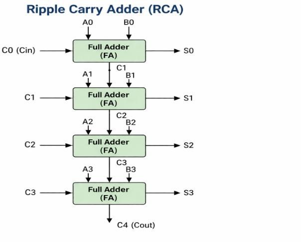 Figure 1: Ripple Carry Adder where carry moves step by step from one stage to the next.