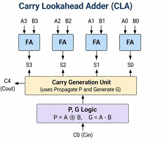 Figure 2: Carry Lookahead Adder where carry is calculated in advance to make addition faster.