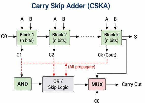 Figure 3: Carry Skip Adder where carry skips some stages to reduce delay.