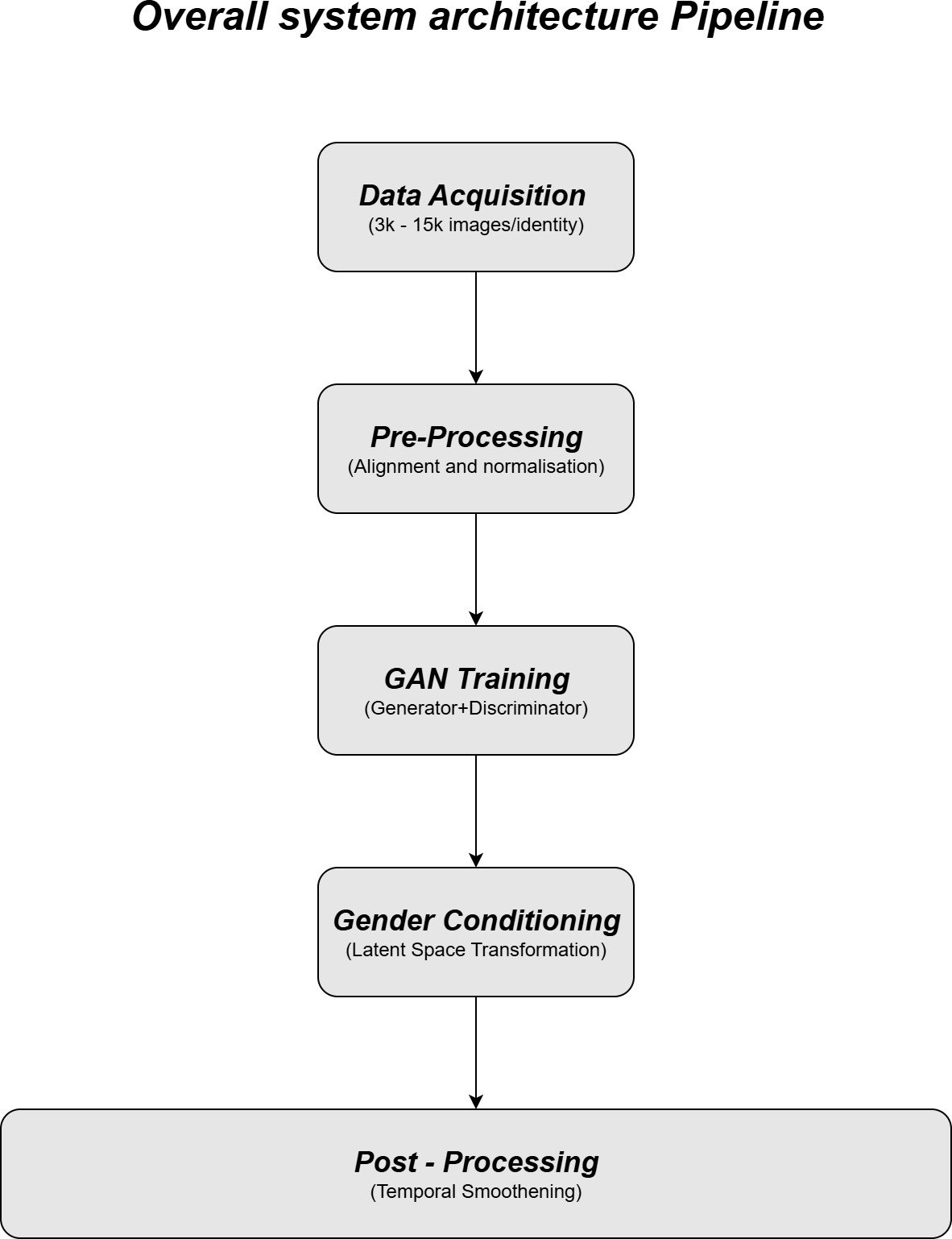 The proposed Methodology joins the processing techniques, where the model is trained using advanced GAN structures [5], and production of a high-quality facial dataset to ensure visual consistency, where the following processes, as shown in Figure 1, are used to achieve this.