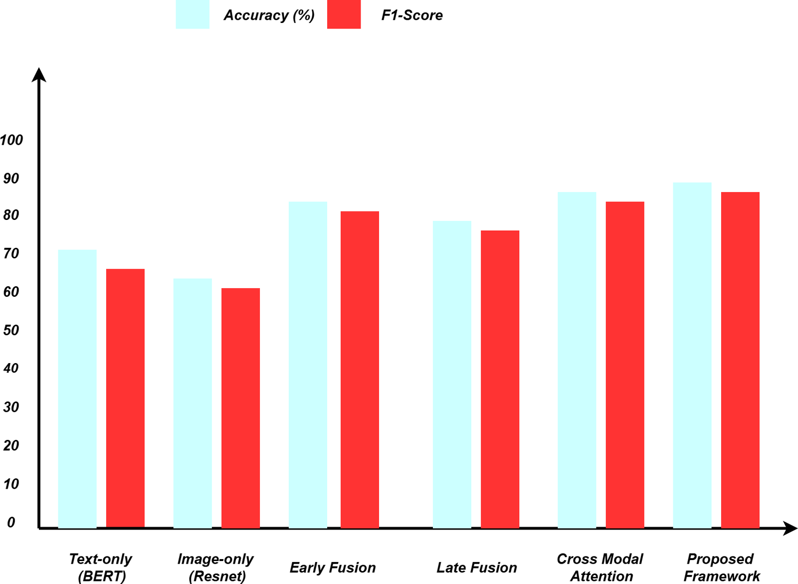 The late fusion will independently process the image and the text, where it merges the classification outputs at a decision level. This will be useful to detect the differences when the modalities differ in intensity or clarity [1].