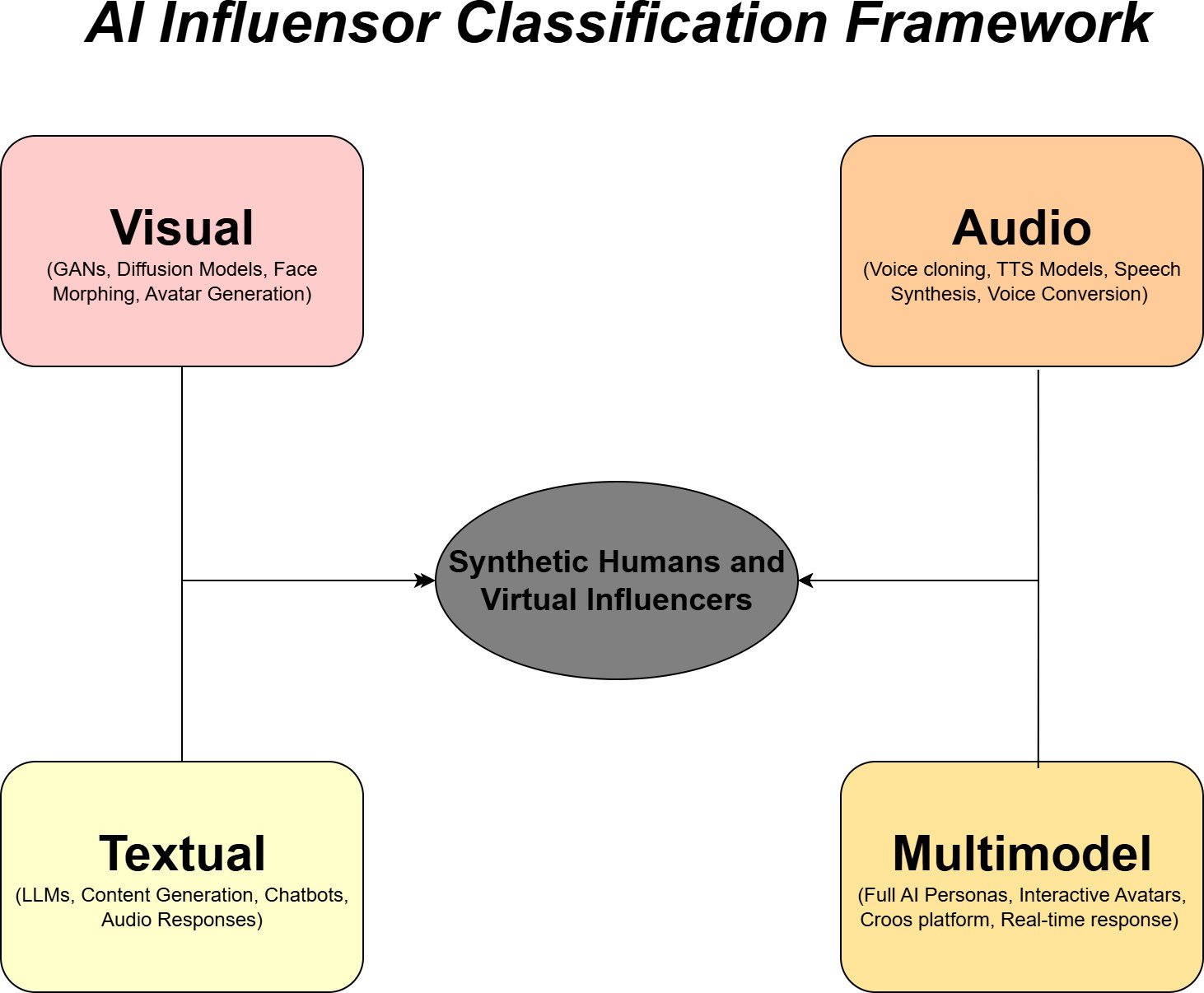 Synthetic humans, Virtual influencers (VIs), Digital Celebrities, Deepfake Technologies, Multimodal Detection systems.