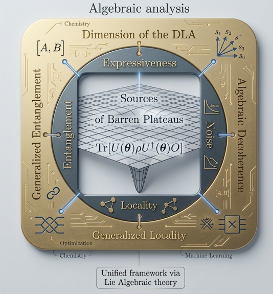 - Ragone, M., Bakalov, B. N., Sauvage, F., Kemper, A. F., Ortiz Marrero, C., Larocca, M., & Cerezo, M. (2024). A Lie algebraic theory of barren plateaus for deep parameterized quantum circuits. Nature Communications, 15(1), 7172. https://doi.org/10.1038/s41467-024-49909-3